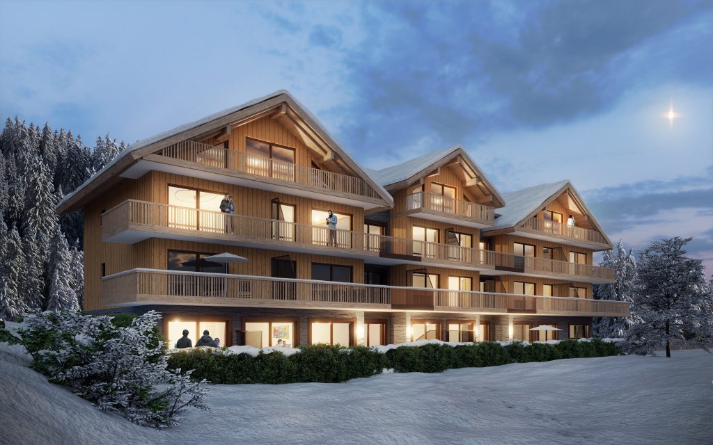 The Chalet-buildings will be spread over 4 floors, with an architectural style in keeping with the low-rise Savoyard aesthetics throughout the village. Each apartment will be South facing, offering stunning views from spacious private balconies.