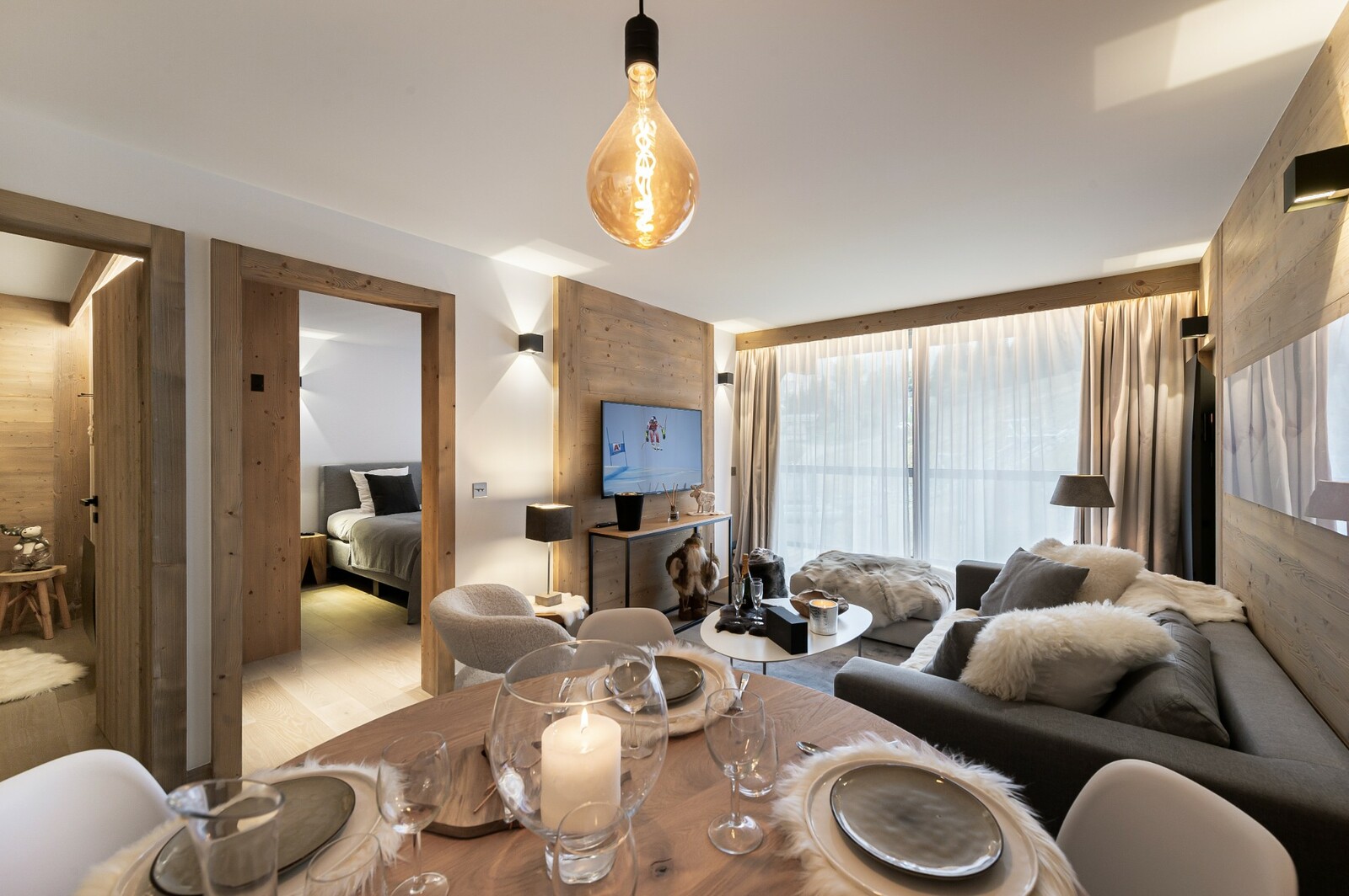 Apartment located in the heart of Courchevel village, on the 6th floor of a high-end residence, with quality materials, the property is composed of an equipped kitchen open onto the living room and a dining room. A double bedroom, a mountain corner with two bunk beds and a shower room complete this apartment and can accommodate up to 4 guests, ideal for families.The property is sold fully equipped and furnished