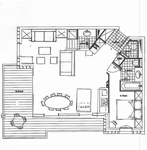 This charming and well laid out one bedroom apartment has 56.09 m2 of habitable living space. Located in the ideally quiet residence Refuge du Montagnard, it can comfortably sleep 4 people due to the pull out sofa bed in the living room.The apartment had originally a second bedroom which has been removed in order to create a larger living room. It benefits from a modern fully fitted kitchen, connected to the open planned dining/living area. From the living room you can access the fantastic 18.91m2 West facing balcony. The master bedroom has its own en-suite bathroom with WC and bath for unwinding after a hard days skiing. You can also find a separate shower room and WC.
