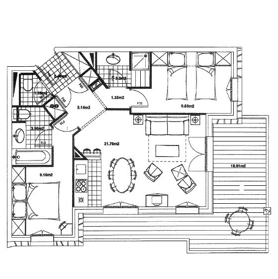 This is a two bedroom/two bathroom apartment with 56.34 m2 of habitable living space, which is located in the ideally quiet residence Refuge du Montagnard.The apartment benefits from a modern fully fitted kitchen, connected to the open planned dining/living area where there is a pull-out sofa bed which allows the flat to comfortably sleep 6 people. The fantastic 18.91m2 North facing balcony can be accessed from the living room. The master bedroom has its own en-suite bathroom and the second bedroom, a twin, has access to a separate shower room and WC.