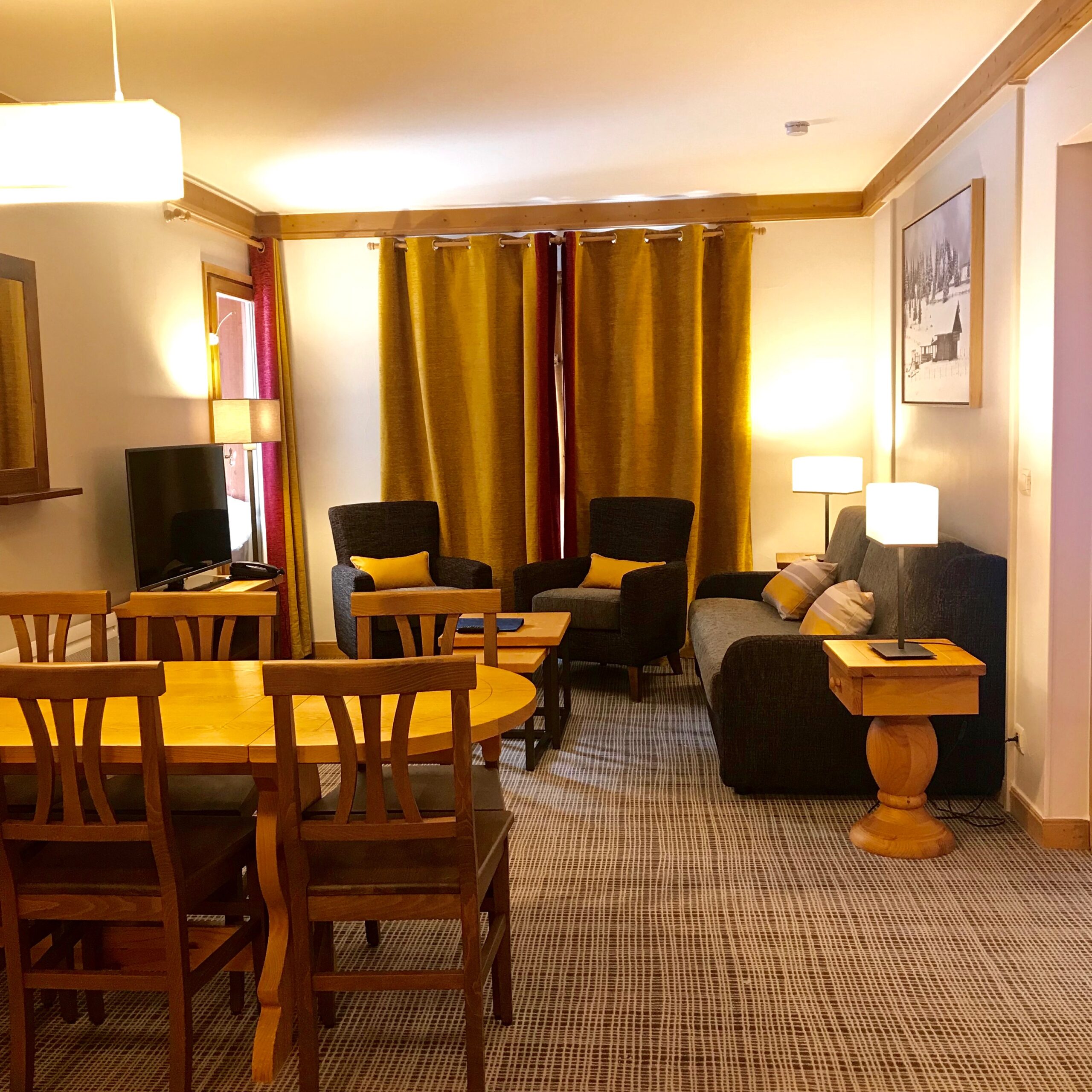 Access to the terrace is from the living room, and all rooms in the apartment have lots of lovely natural light and beautiful views of the surrounding mountains and Paradiski slopes.