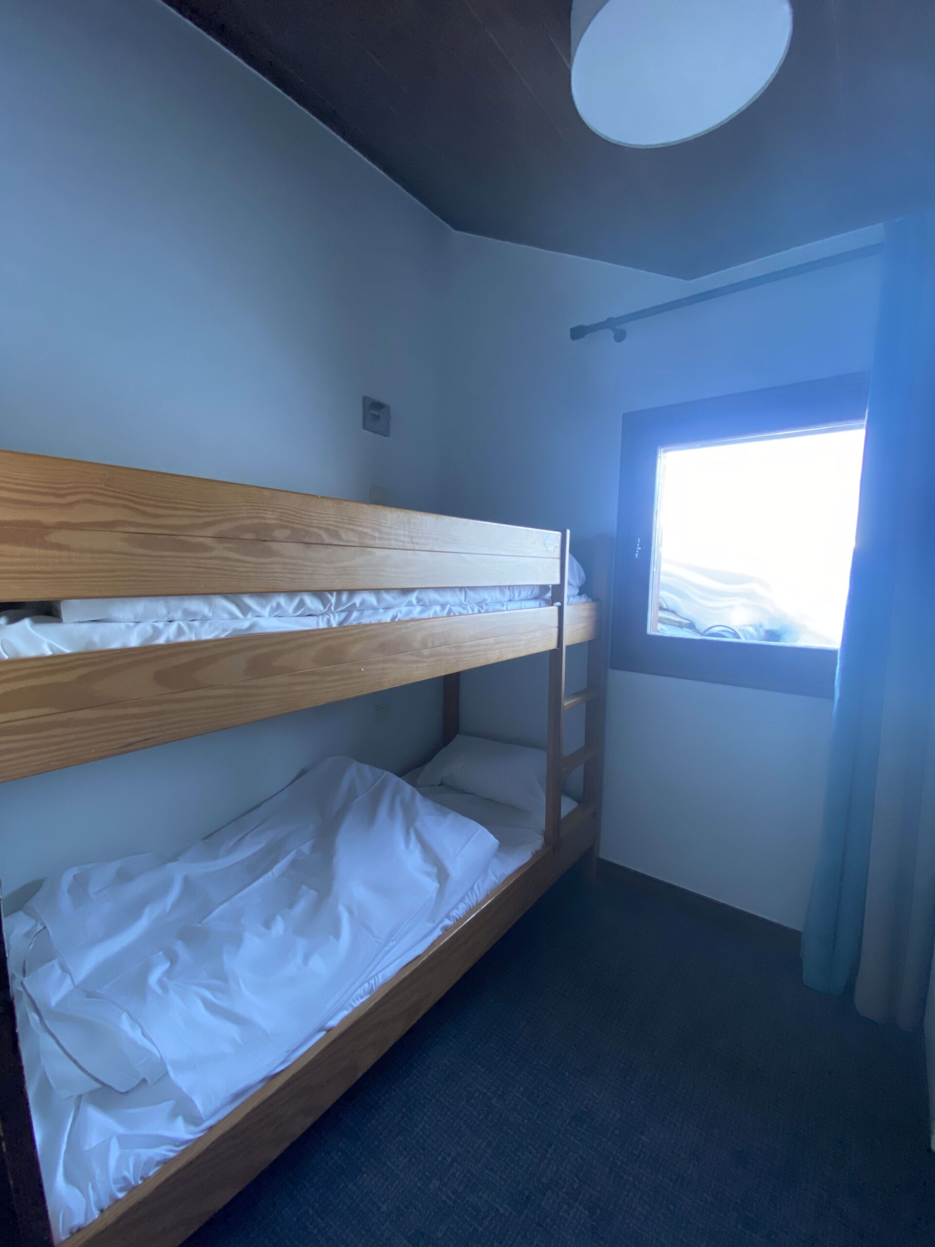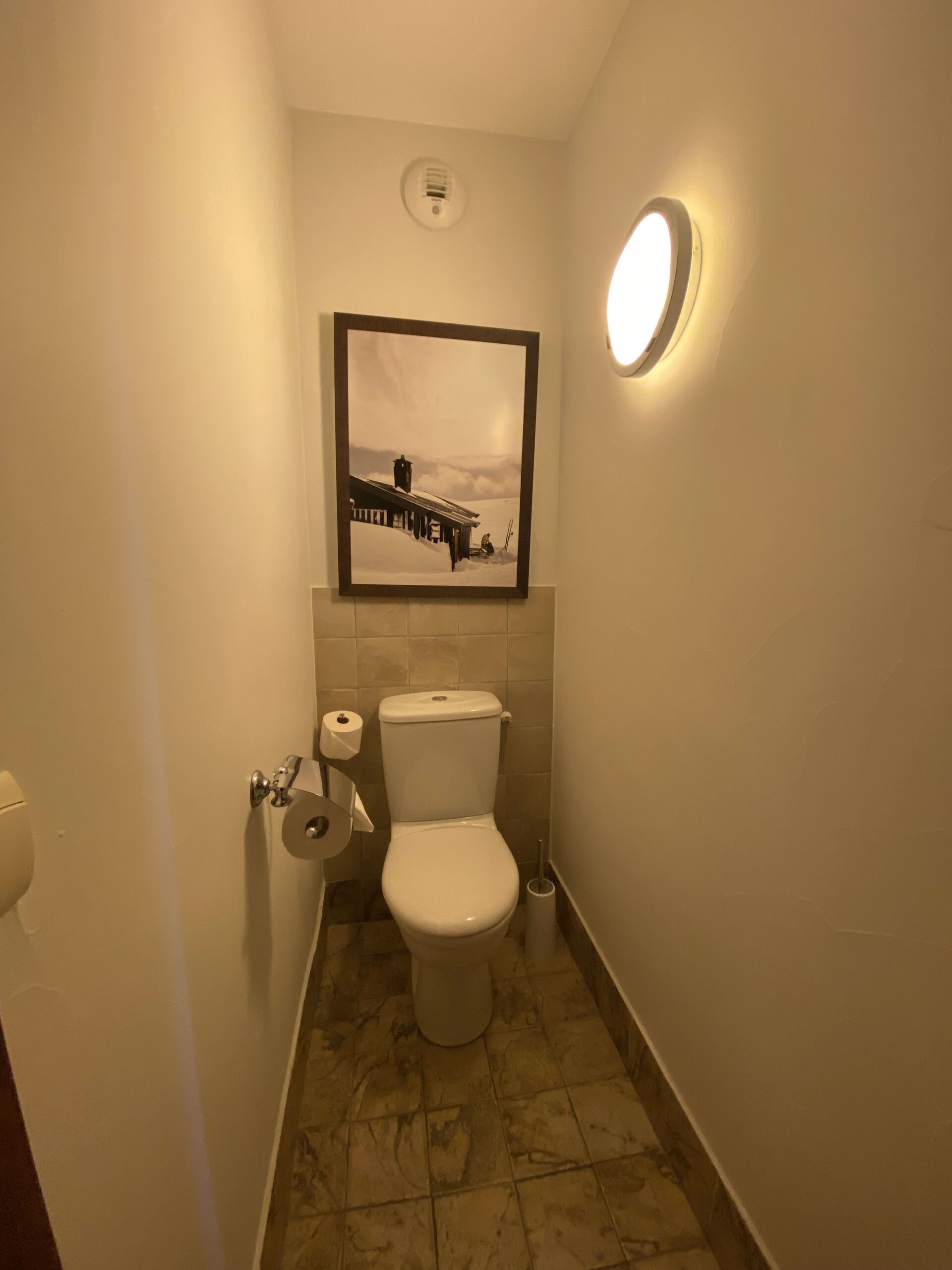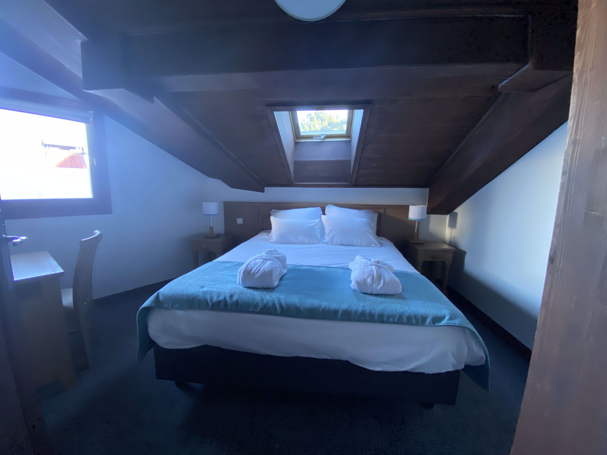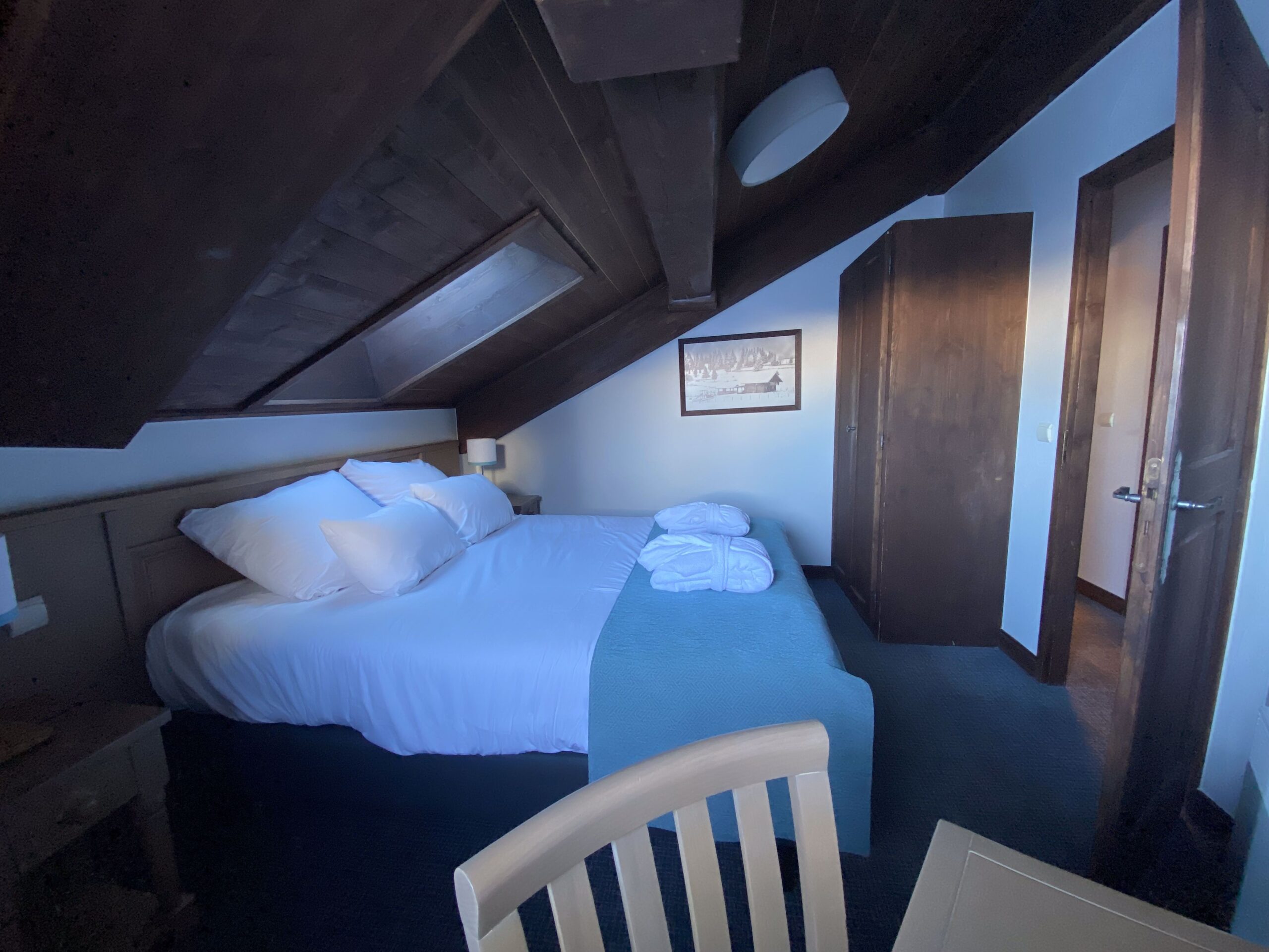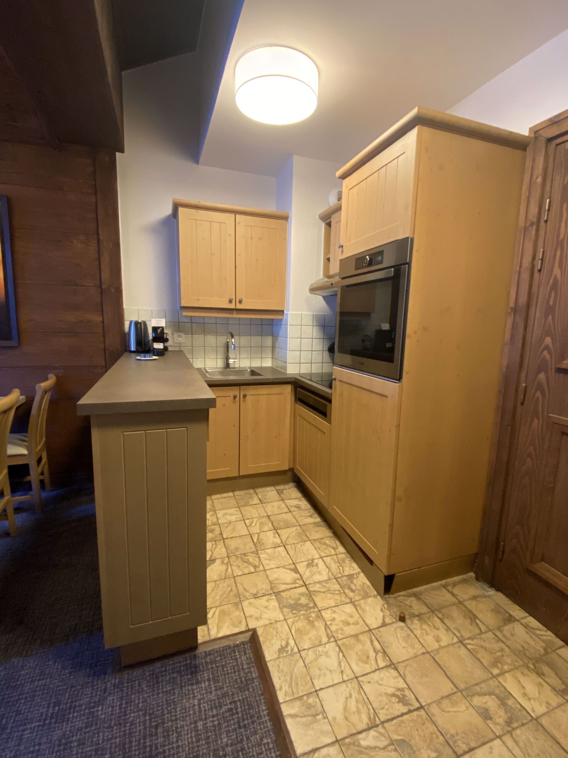 Lovely apartment for Sale in Arc 1950 - Manoir SavoieCosy 2 bed apartment on the top floor. It has a large living room with a fireplace, a north-east terrace with a magnificent view, a kitchen opening onto the living room, 1 bedroom with a double bed and a study area, a bedroom with bunk beds, a bathroom and a separate toilet.