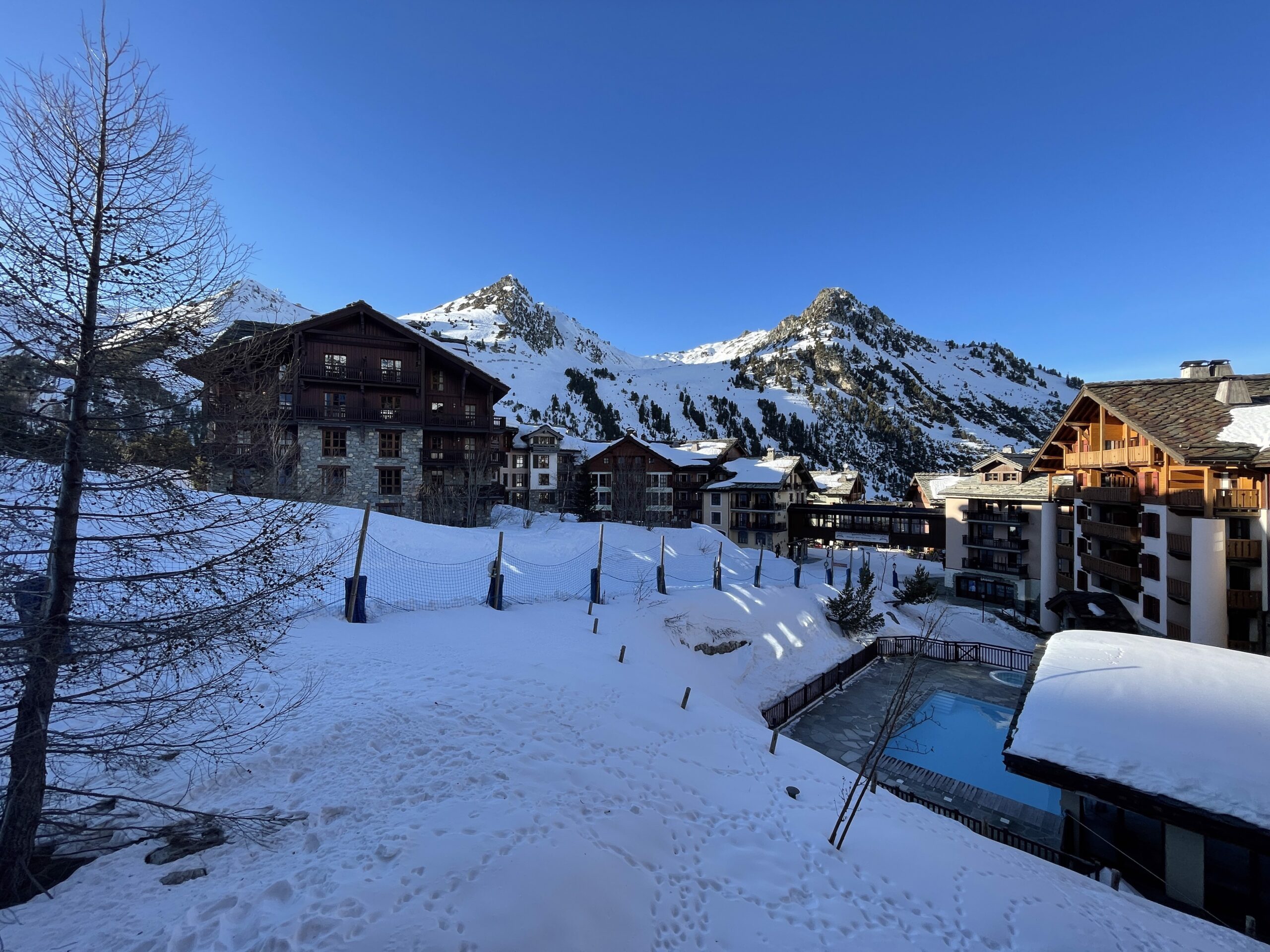 Fabulous classic freehold Property for Sale in Arc 1950 - Prince des CimesVery rare to the sale, apartment in classic freehold, located in the residence of the Prince des Cimes in the heart of the village. This property has a warm and sunny living space overlooking a large corner terrace, 2 bedrooms, 1 en suite with bathroom and toilet, shower room separate toilet. The apartment is sold fully furnished and equipped, it can accommodate 8 people. The residence has an indoor swimming pool, outdoor jacuzzi, fitness room, hammam and sauna; ski lockers with ski departure and return, cellar, free access to the parking lot