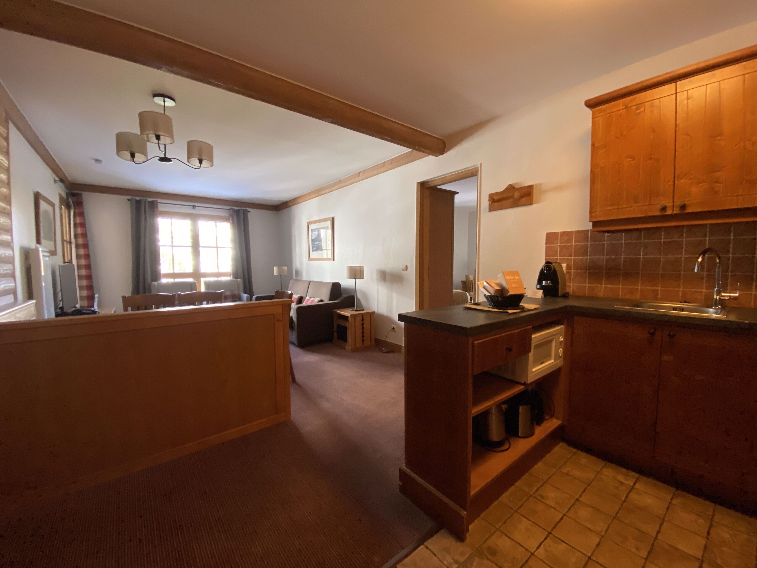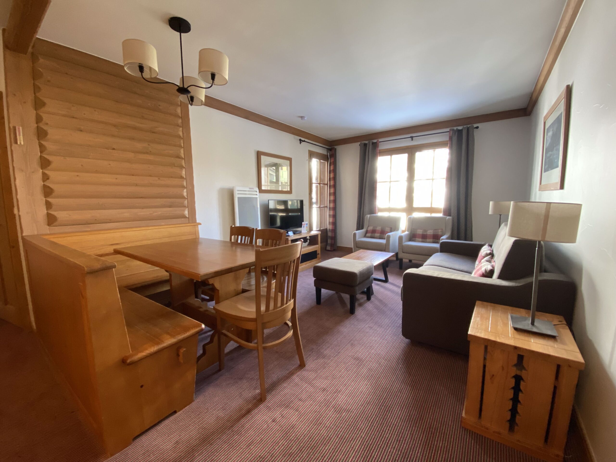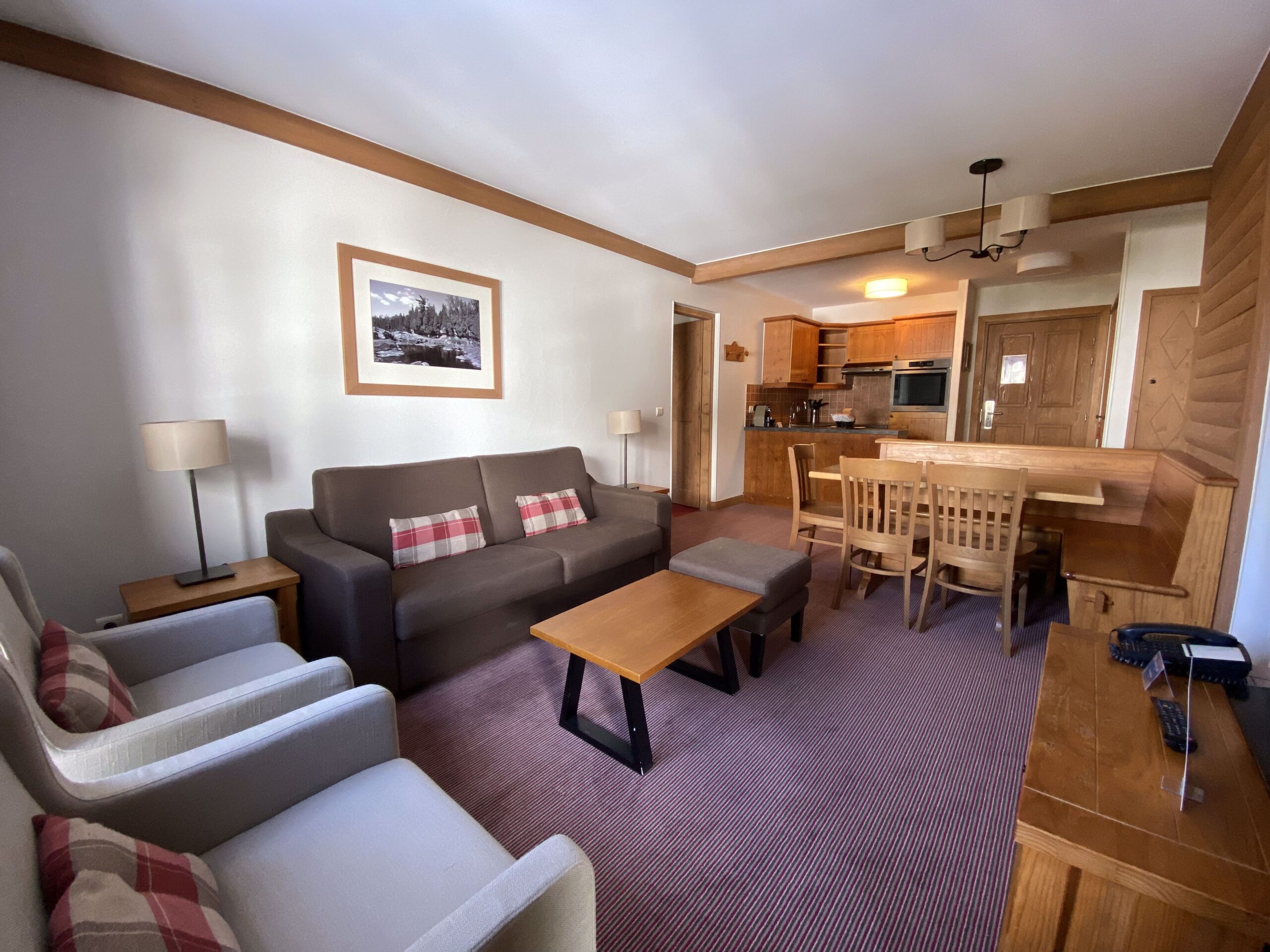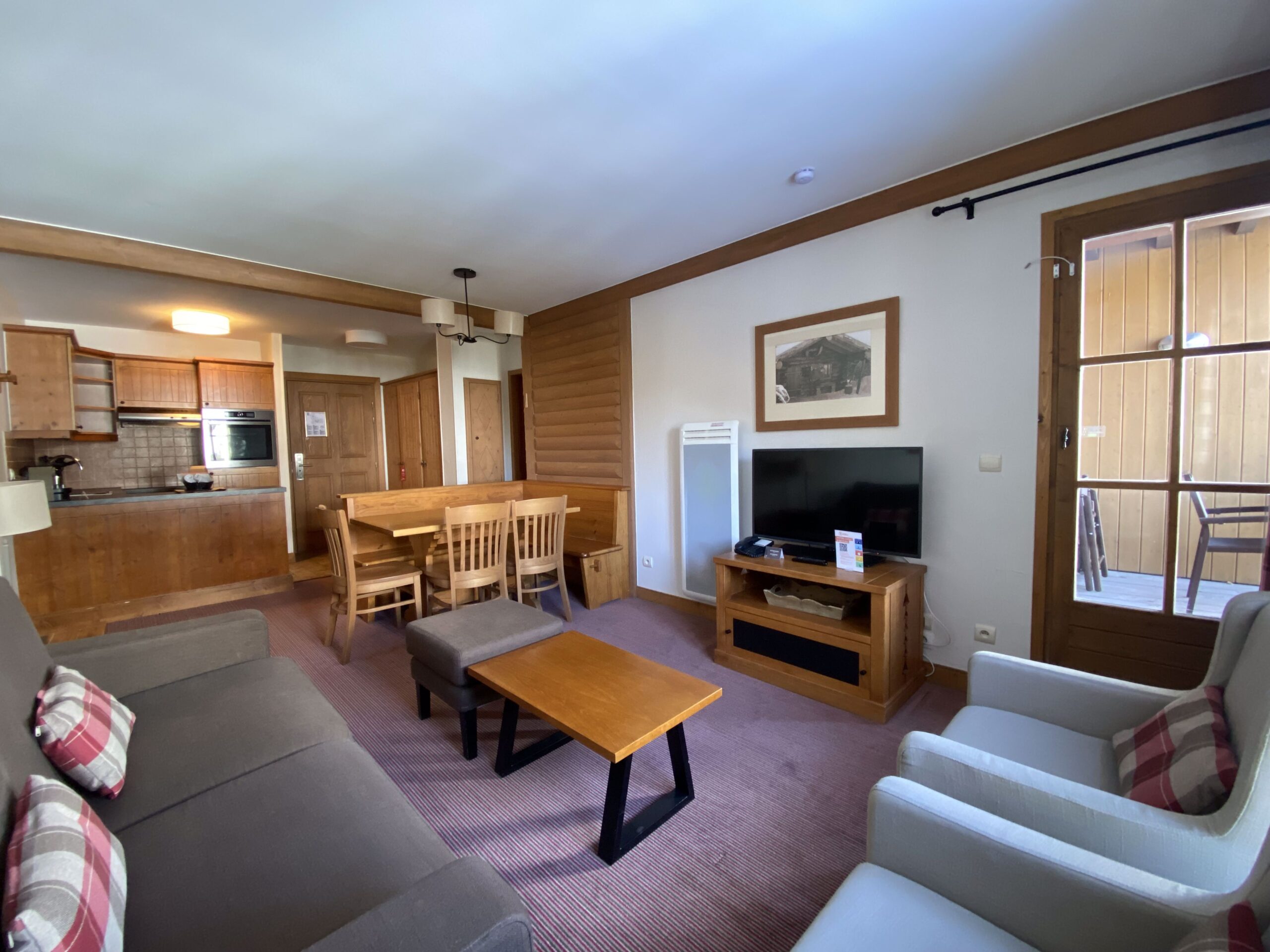 Beautiful 2 Bed apartment for in Arc 1950 - Auberge JérômeLocated in the ski in-ski out Auberge Jérôme, this charming apartment of 60.75 m2 includes a superb living room opened onto a fully equipped kitchen, exceptional North-North / West facing terrace, two bedrooms - one of which en suite, shower room and toilet.